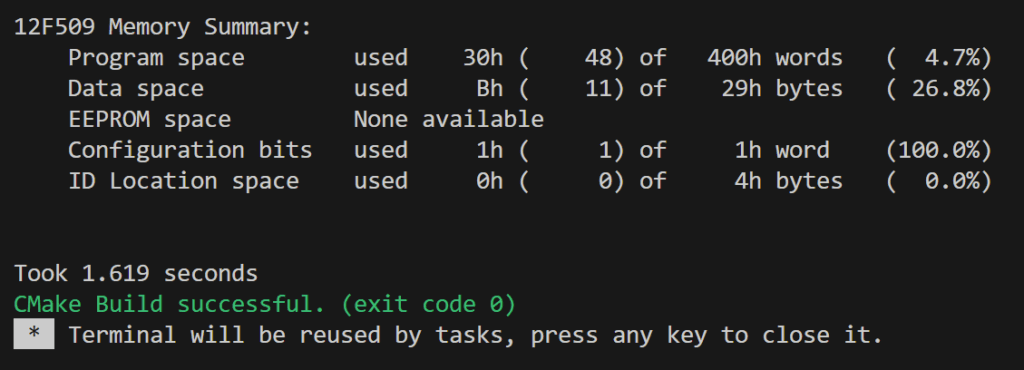 ビルドに成功すると、メモリ使用量が表示されます。